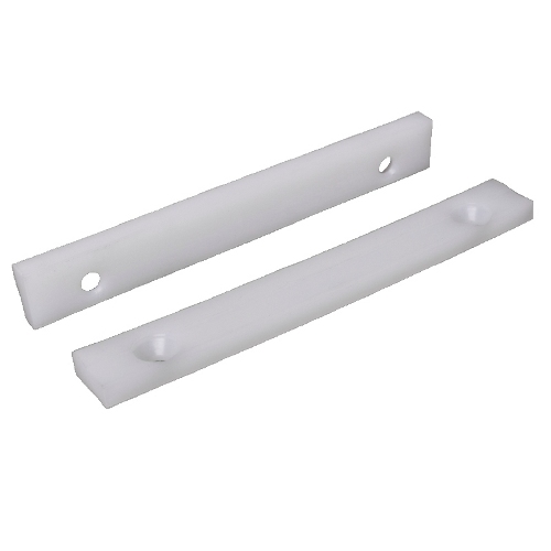 Pusher guides. These guides are a critical part of your pusher assembly. Worn guides can allow the pusher to track incorrectly along its stroke causing squaring problems and collisions between the grippers and throat plates; these collisions will eventually necessitate expensive repairs. Check the condition of the guides on a monthly basis to determine the need for replacement. Our rule-of-thumb is to replace the guides when there is an overall combined gap of 1/16” (1.6 mm) or larger between the guides and the pusher rack, or when the guide is worn down to the wear indicator.